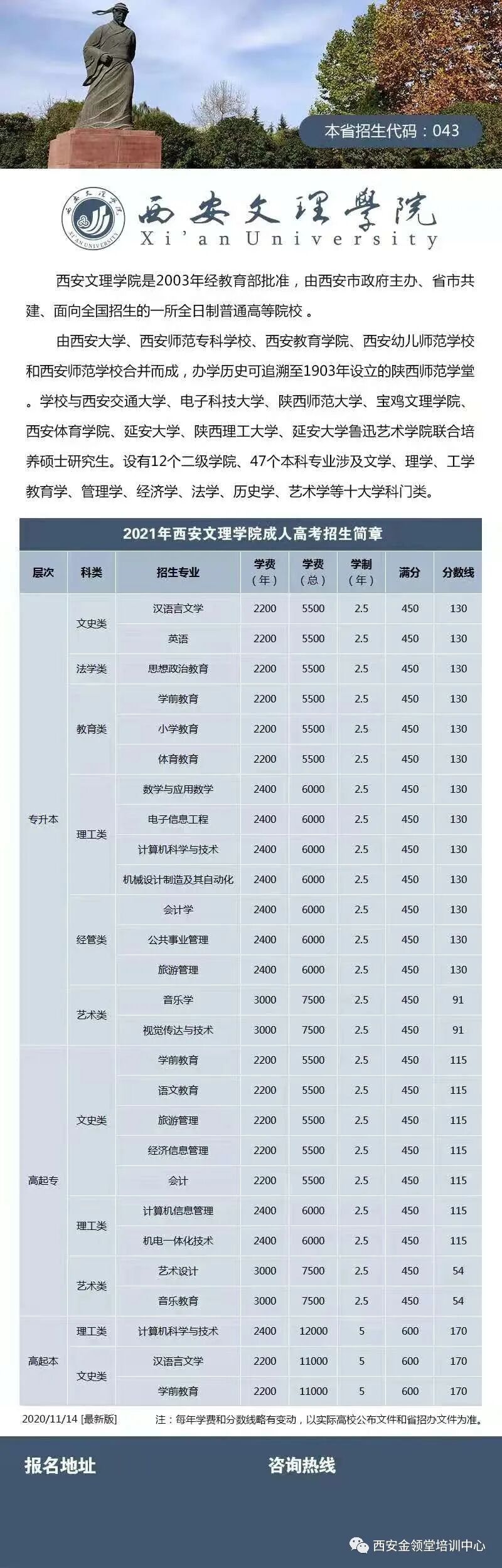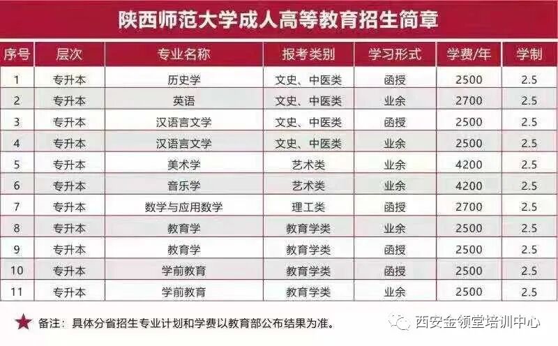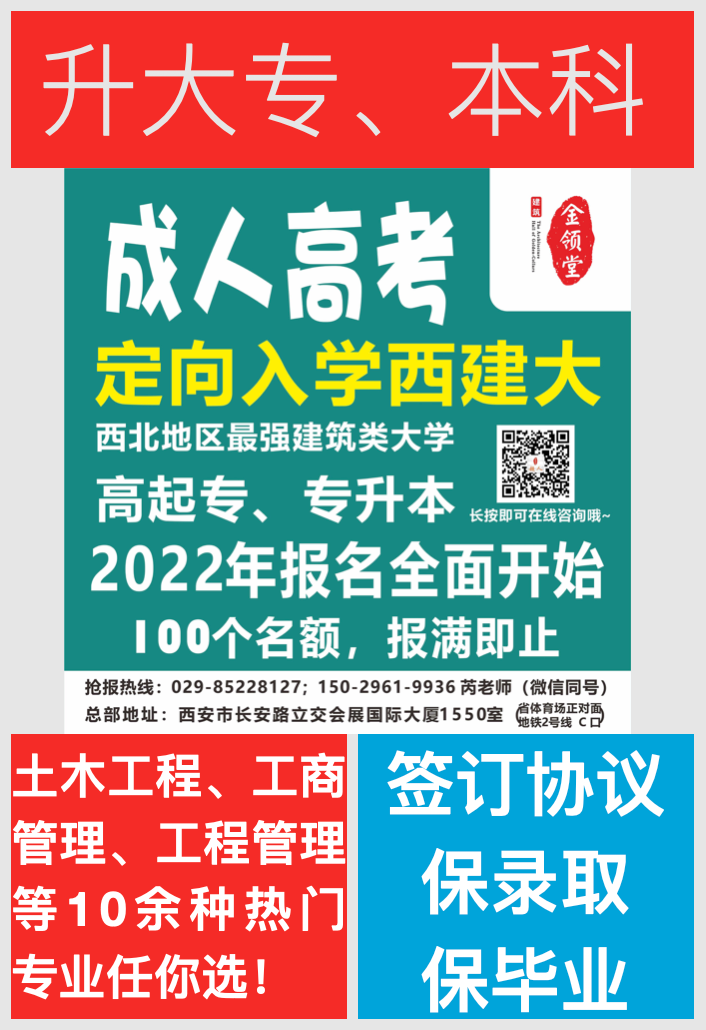应广大考生要求,金领堂联合西安交通大学、西北大学、陕西学前师范学院等8所知名院校函授站点,为广大学员提供成人高考服务,提供高起专、高起本、专升本专业选择机会,为大家提升学历提供便利。