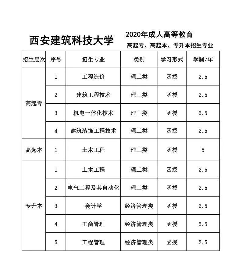 高起专:建筑工程技术、工程造价、机电一体化技术、道路桥梁工程技术、采矿工程;