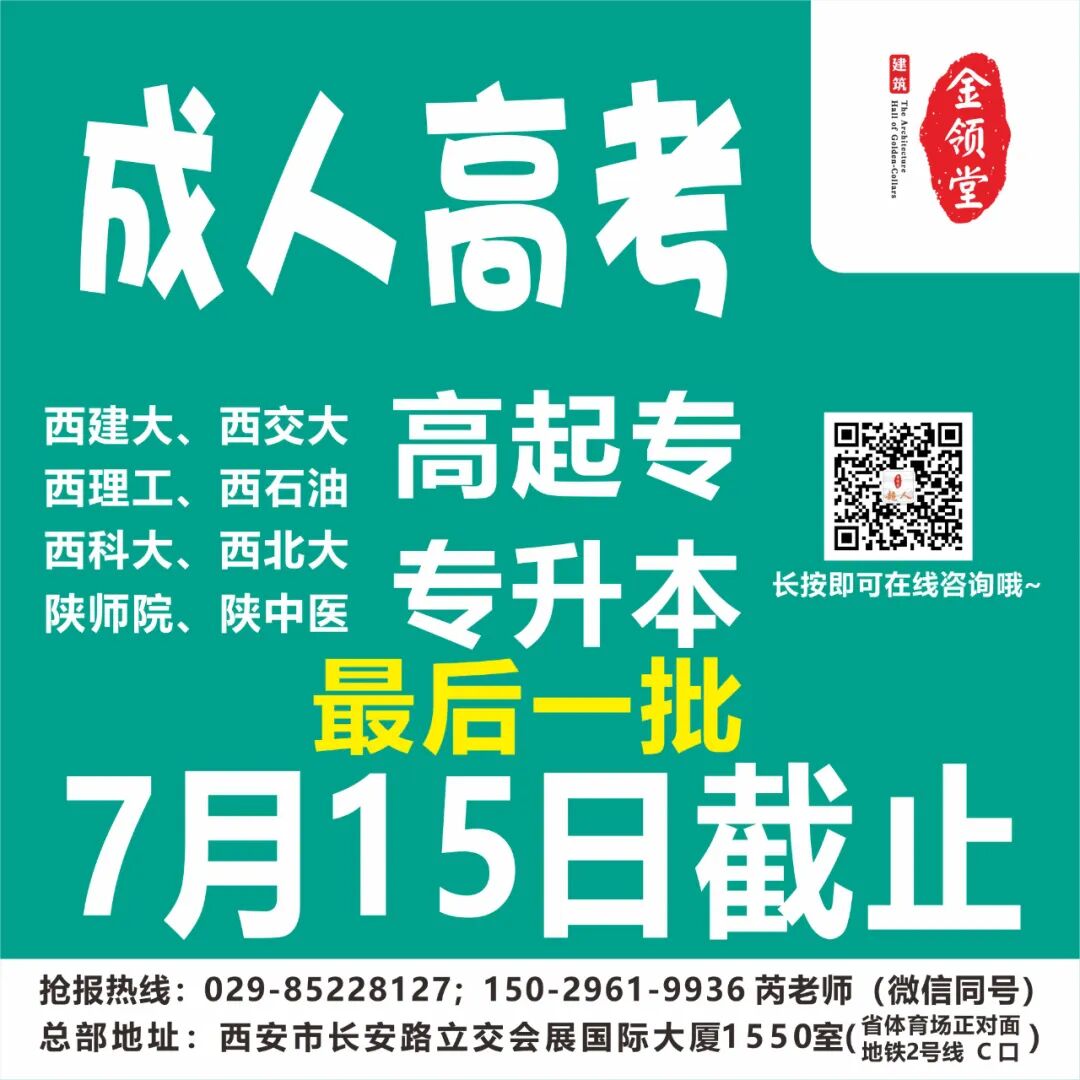 成人高考【成人高考】后一批报名倒计时3天,7月15日截止,西交大、西建大、西科大、西北大学等9大名校,报名享“清凉一夏”礼品活动!