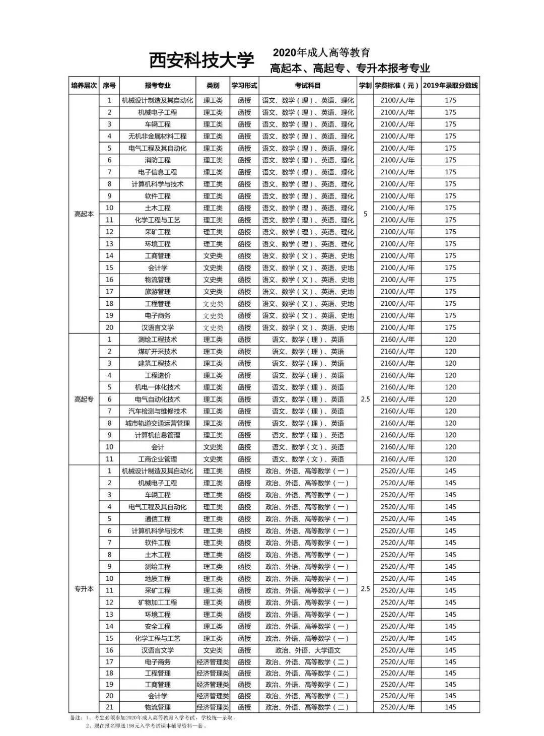 高起本:土木工程、采矿工程、机械设计制造及其自动化、电气工程及其自动化、工商管理、工程管理、会计学、电子信息工程等