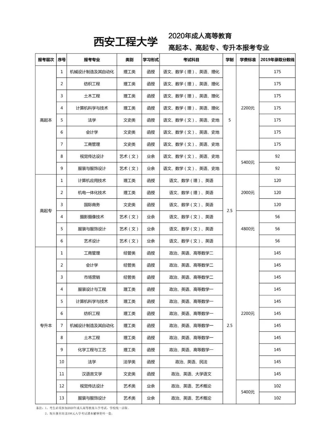 专升本:工商管理、会计学、市场营销、计算机科学与技术、服装设计与工程等;
