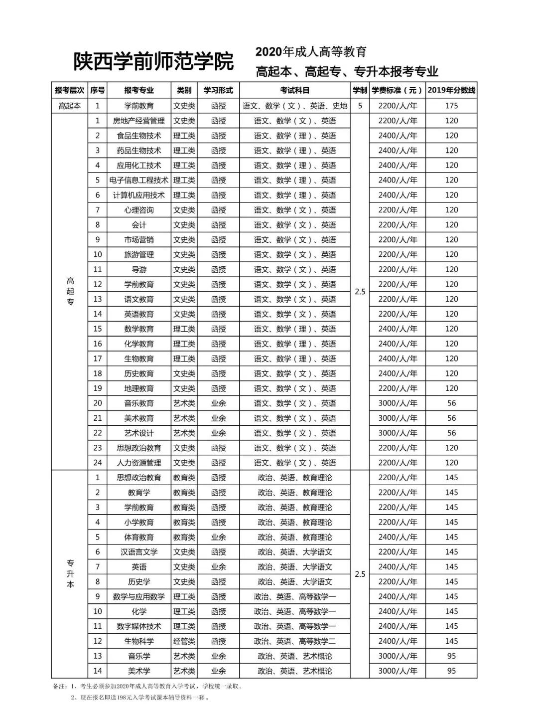 专升本:历史学、英语、汉语言文学、美术学、音乐学、教育学、学前教育等;