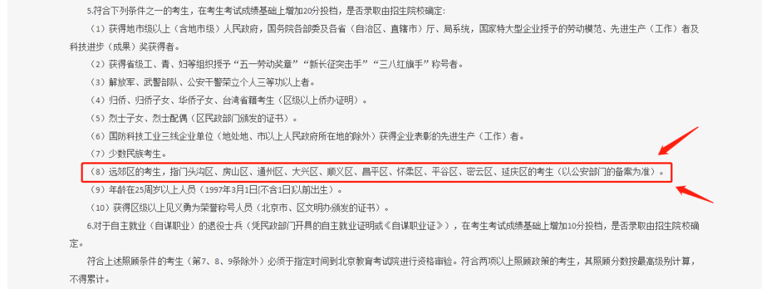只要你是北京的偏远郊区的考生,比如居住在门头沟区、房山区、通州区、大兴区、顺义区、昌平区、怀柔区、平谷区、密云区、延庆区等地区,便可以在考试成绩基础上进行增加20分。